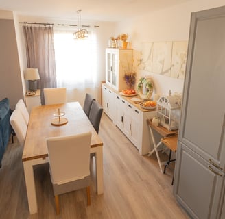 Poznaj nasze mieszkanie w Karwianach! Przestronne dwupoziomowe, z wyraźnie zaznaczoną strefą rodzinną do wspólnego spędzania czasu, osobnymi pokojami dla dzieci. Ponadto mieszkanie na drugiej kondygnacji ma strefę wyizolowaną dla rodziców, z piękną aranżacją półotwartego pokoju kąpielowego. Wszystko to czeka urządzone pod klucz pod Wrocławiem.
